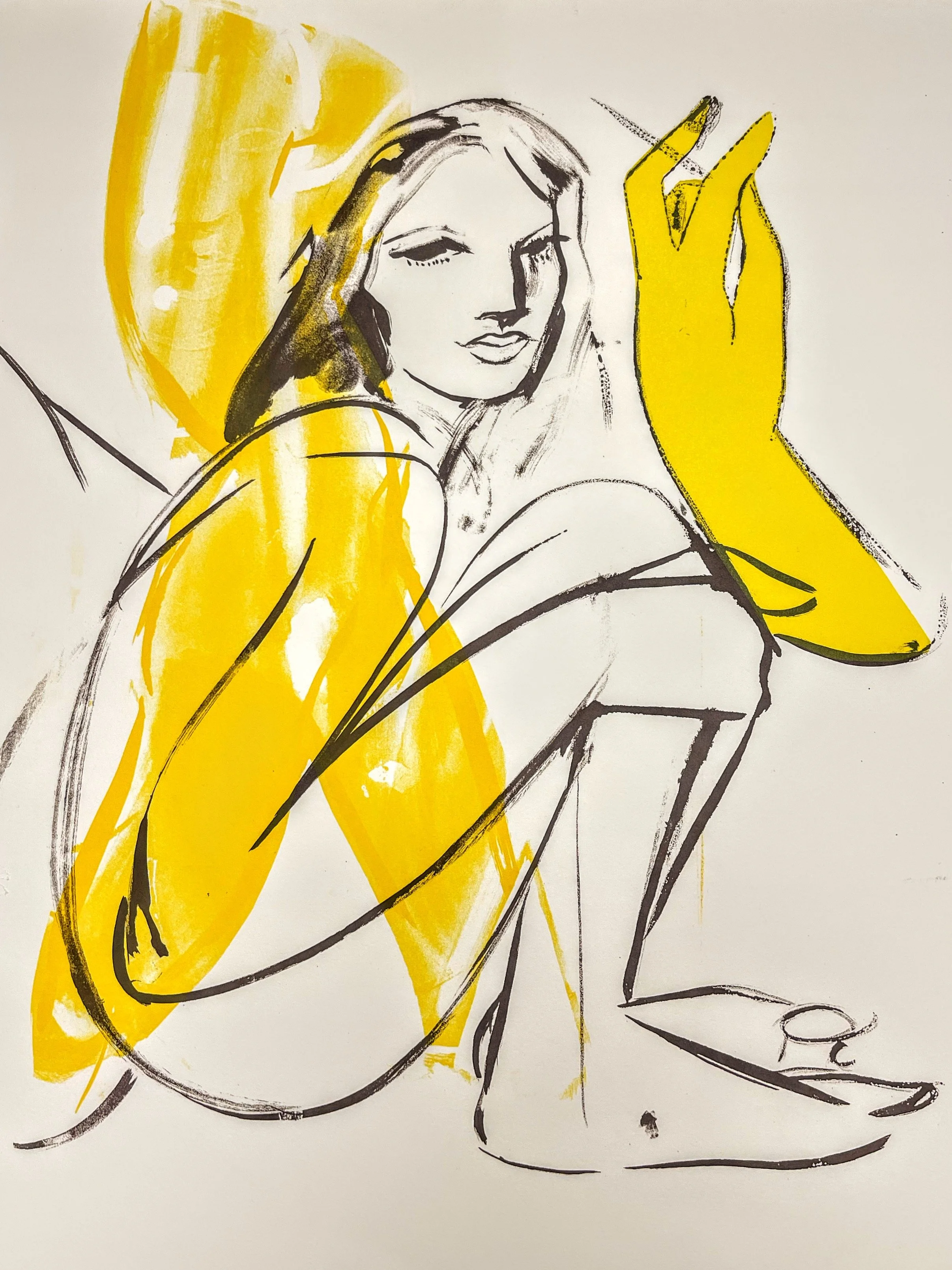 The screens for this nine colour print were made directly from France-Lise’s ink drawings on True-Grain film and painting with filler onto the screen. No photoshop or digitally printed transparencies!